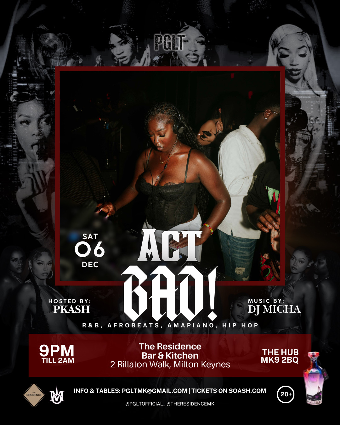 PGLT! Act Bad, party vibes and classy energy a night to connect, create, and celebrate.